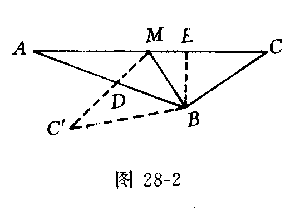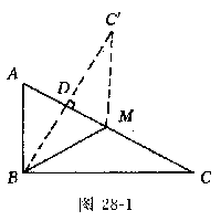 (2)若原三角形中∠ABM<∠CBM,对折后如图28-2.如上证明,可得D为AB,M