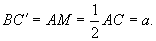 ,BM是中线,AC=2a,若沿BM将三角形对折起来,那个两个小三角形ABM和BCM重叠部分的面积恰好等于△ABC面积的四分之一.试求△ABC的面积.