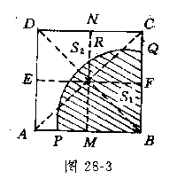 证明 (如图28-3)设曲线PQ分正方形ABCD为面积相等的两部分S1,S2.又M、N、E、F分别为正方形的边的中点.因