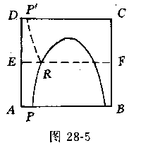 ② Q在AB上(图28-5).设曲线PQ与线段EF的一个公共点为R.以EF为对称轴作出PR的对称图形