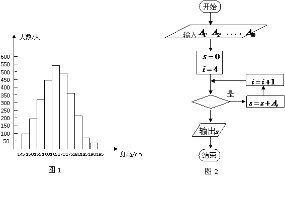 内的学生人数).图2是统计图1中身高在一定范围内学生人数的一个算法流程图.现要统计身高在160-180cm(含160cm,不含180cm)的学生人数,那么在流程图中的判断框内应填写的条件是( )
