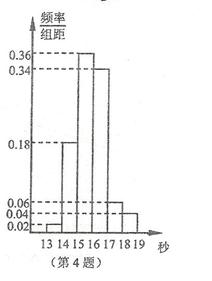 某学校为了解该校600名男生的百米成绩(单位:s),随机选择了50名学生进行调查,右图是这50名学生百米成绩胡频率分布直方图。根据样本的频率分布,估计这600名学生中成绩在
