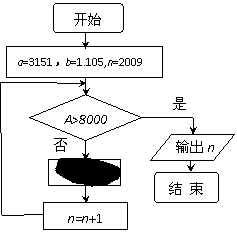 哈尔滨2009年的生产总值约为3151亿元人民币,如果从此地区生产总值的年增长率为10.5%,求浦东新区最早哪一年的生产总值超过8000亿元人民币?某同学为解答这个问题设计了一个程序框图,但不慎将此框图的一个处理框中的内容污染而看不到了,则此框图中因被污染而看不