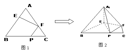 15.在正三角形ABC中,E、F、P分别是AB、AC、BC边上的点,满足AE:EB=CF:FA=CP:PB=1:2(如图1)。将△AEF沿EF折起到