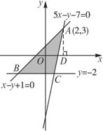 解析:画出可行域,其可行域为以A(2,3)、B(-3,-2)、C(1,-2)为顶点的三角形内部部分(包含边界),过A作x轴的垂线,垂足为D,由图形可知向量