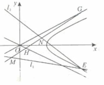 的交点E在双曲线C上,直线MN与两条渐近线分别交与G、H两点,求