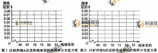(Ⅰ)完成下面频率分布直方图,并比较注射两种药物后疱疹面积的中位数大小;