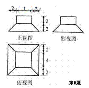 (8)若某几何体的三视图(单位:cm)如图所示,则此几何体的体积是
