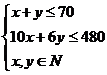 产品获利50元.甲、乙两车间每天功能完成至多70多箱原料的加工,每天甲、乙车间耗费工时总和不得超过480小时,甲、乙两车间每天获利最大的生产计划为![]()