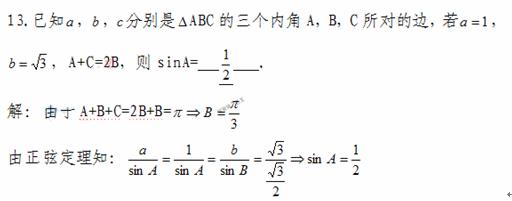 34、(2010广东理数)11.已知a,b,c分别是△ABC的三个内角A,B,C所对的边,若a=1,b=