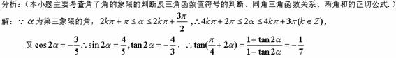 [命题意图]本小题主要考查三角函数值符号的判断、同角三角函数关系、和角的正切公式,同时考查了基本运算能力及等价变换的解题技能.