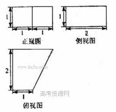 [温馨提示]正视图和侧视图的高是几何体的高,由俯视图可以确定几何体底面的形状,本题也可以将几何体看作是底面是长为3,宽为2,高为1的长方体的一半。