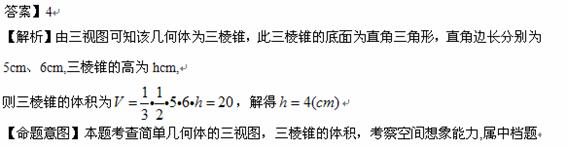 [解析]本题主要考查三视图的基础知识,和主题体积的计算,属于容易题。