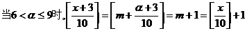 10.(2010陕西文数)某学校要招开学生代表大会,规定各班每10人推选一名代表,当各班人数除以10的余数大于6时再增选一名代表.那么,各班可推选代表人数y与该班人数x之间的函数关系用取整函数y=[x]([x]表示不大于x的最大整数)可以表示为 [B]