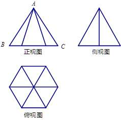 9.(2009番禺一模)一个几何体的三视图如右图所示,其中正视图中△ABC是边长为2的正三角形,俯视图为正六边形,那么该几何体的侧视图的面积为( ).