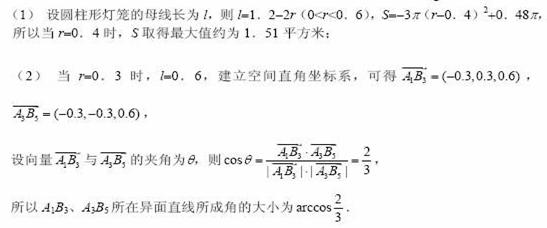 (上海卷文21)如图所示,为了制作一个圆柱形灯笼,先要制作4个全等的矩形骨架,总计耗用9.6米铁丝,再用