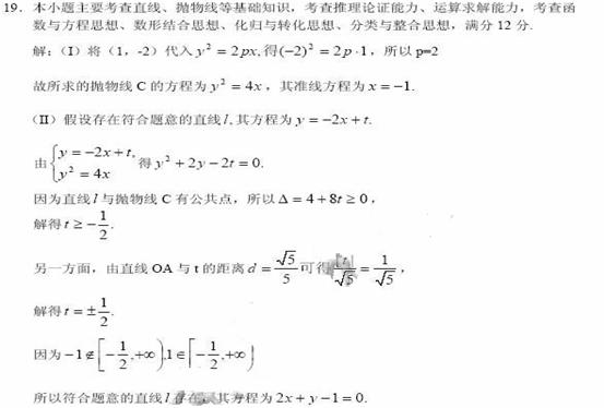 (II)是否存在平行于OA(O为坐标原点)的直线l,使得直线l与抛物线C有公共点,且直线OA与l 的距离等于