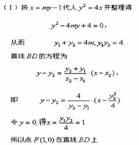 2.(湖北卷理19文20)已知一条曲线C在y轴右边,C上没一点到点F(1,0)的距离减去它到y轴距离的差是1.