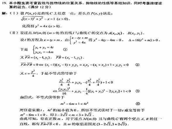 解析:本题主要考查抛物线几何性质,直线与抛物线、点与圆的位置关系等基础知识,同时考查解析几何的基本思想方法和运算求解能力。