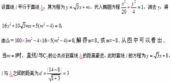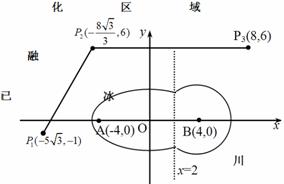 (湖南卷理19)为了考察冰川的融化状况,一支科考队在某冰川上相距8km的A,B两点各建一个考察基地.视冰川面为平面形,以过A,B两点的直线为x轴,线段AB的垂直平分线为y轴建立平面直角坐标系(图6).在直线
