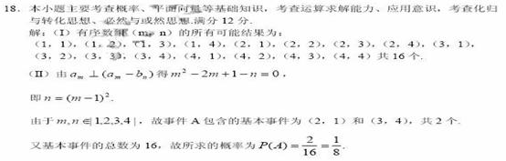 1.(福建卷文18)设平面向量a m =(m,1),b n =(2,n),其中m,n∈{1,2,3,4}.