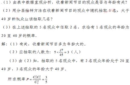 (2)用分层抽样方法在收看新闻节目的观众中随机抽取5名,大于40岁的观众应该抽取几名?