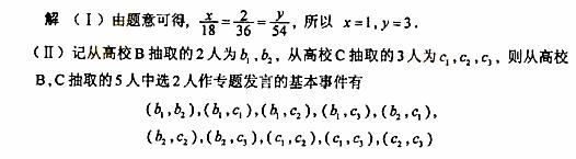 (Ⅱ)若从高校B、C抽取的人中选2人作专题发言,求这二人都来自高校C的概率。