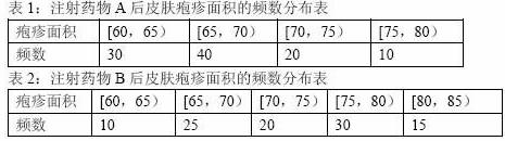 (Ⅱ)下表1和表2分别是注射药物A和B后的试验结果.(疱疹面积单位:mm2)
