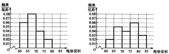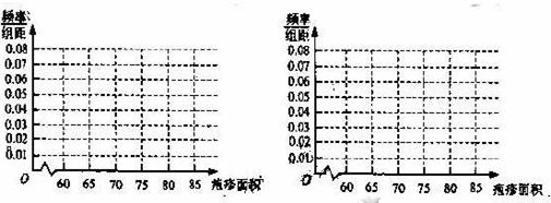 图Ⅰ注射药物A后皮肤疱疹面积的频率分布直方图 图Ⅱ注射药物B后皮肤疱疹面积的频率分布直方图