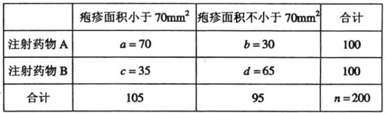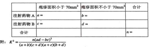 由于K2>10.828,所以有99.9%的把握认为“注射药物A后的疱疹面积于注射药物B后的疱疹面积有差异”。