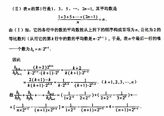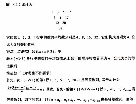(I)写出表4,验证表4各行中数的平均数按从上到下的顺序构成等比数列,并将结论推广到表n(n≥3)(不要求证明);