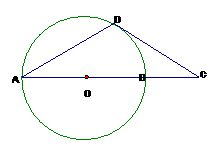 AB是圆O的直径,D为圆O上一点,过D作圆O的切线交AB延长线于点C,若DA=DC,求证:AB=2BC。