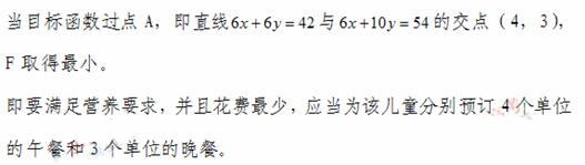 如果一个单位的午餐、晚餐的费用分别是2.5元和4元,那么要满足上述的营养要求,并且花费最少,应当为该儿童分别预订多少个单位的午餐和晚餐?