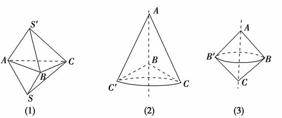 B错误.如图(2)(3)所示,若△ABC不是直角三角形,或是直角三角形但旋转轴不是直角边,所得的几何体都不是圆锥.