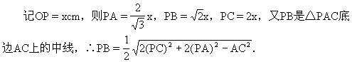 96. 已知PA,PB,PC与平面α所成的角分别为60°,45°,30°,PO⊥平面α,O为垂足,又斜足A,B,C三点在同一直线上,且AB=BC=10cm,求PO的长.