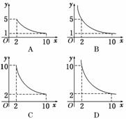6.一张正方形的纸片,剪去两个一样的小矩形得到一个“E”形图案,如图所示,设小矩形的长、宽分别为x、y,剪去部分的面积为20,若2≤x≤10,记y=f(x),则y=f(x)的图象是 ( )