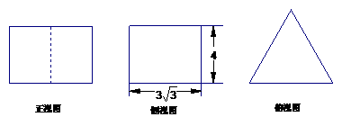 15、若一个底面为正三角形、侧棱与底面垂直的棱柱的三视图如下图所示,则这个棱柱的体积为 。