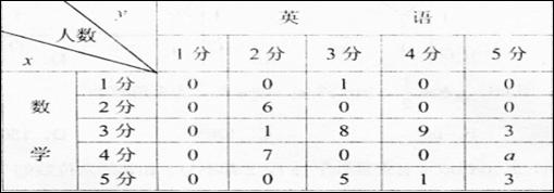 15. 某大学自主招生面试有50位学生参加,其屮数学与英语成绩采用5分制,设数学成绩为x,英语成绩为y,结果如下表:
