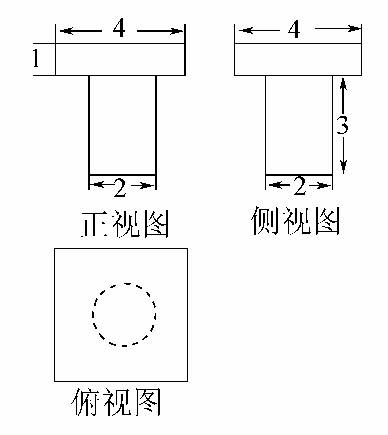 解析:由三视图知,该几何体的上部分是正四棱柱,下部分是圆柱.正四棱柱的底面边长为4 cm,高为1 cm,其体积为16 cm3;圆柱的底面半径为1 cm,高为3 cm,其体积为3π cm3.所以该几何体的体积为(16+3π)cm3.