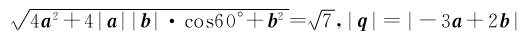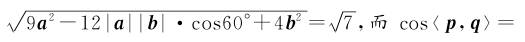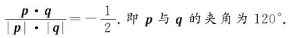 7.已知两单位向量a,b的夹角为60°,则两向量p=2a+b与q=-3a+2b的夹角为( )