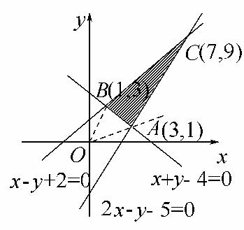 画出约束条件所表示的可行域如图中阴影部分所示,则f(x,y)==,令=k,则f(x,y)=g(k)==2-.