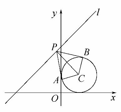 ∴当|PC|取最小值时,|PA|=|PB|取最小值,即S△PAC=S△PBC取最小值,此时,CP⊥l,|CP|==2,则S△PAC=S△PBC=×=,即四边形PACB面积的最小值是.