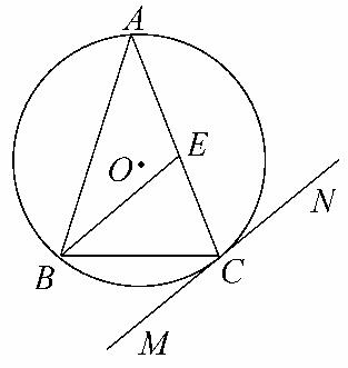 解析:∵∠BCM=∠A,BE∥MN,∴∠BCM=∠EBC,∠A=∠EBC.又∠ACB是公共角,∴ΔABC∽ΔBEC,∴=.