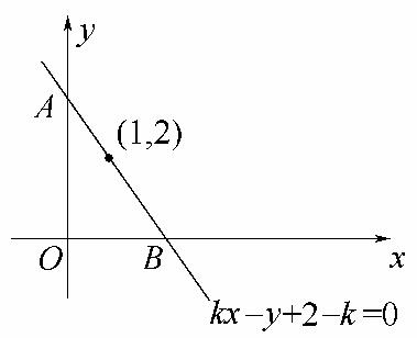 解析:不等式组所表示的平面区域由三条直线围成,其中直线kx-y+2-k=0(k<0)即y-2=k(x-1)(k<0)经过定点(1,2),因此问题转化为求经过定点(1,2)的直线与两坐标轴在第一象限内所围成的三角形的面积的最小值.如图所示,设所围成的区域的面积为S,则S=·|OA|·|OB|=·|2-k|·|1-|.