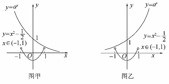 解析:f(x)<即x2-ax<,x2-<ax.当0<a<1时,如图甲所示,在x=1处,得≤a,∴≤a<1;当a>1时,如图乙所示,在x=-1处,得≤,∴1<a≤2.