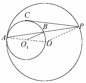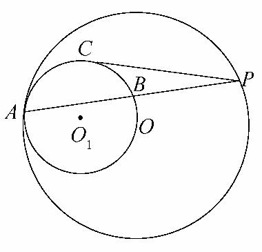 又由切割线定理,知PC2=PB·PA=(PA-AB)·PA=PA2-PA·AB,两端同除以PA2,得=1-,即()2=1-,故=,从而⊙O1和⊙O的半径的比值为==.