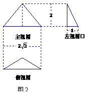 (16) 已知一个三棱锥的三视图如图2所示,其中俯视图是顶角为