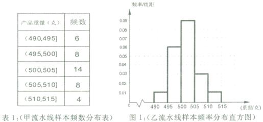 的产品为合格品,否则为不合格品,表1是甲流水线样本频数分布表,图1是乙流水线样