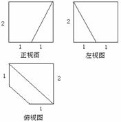 8、已知一个棱长为2的正方体,被一个平面所截得的几何体三视图如图所示,则该几何体体积为( )