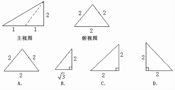 8.已知三棱锥的主视图与俯视图如下图,俯视图是边长为2的正三角形,那么该三棱锥的左视图可能为 ( )